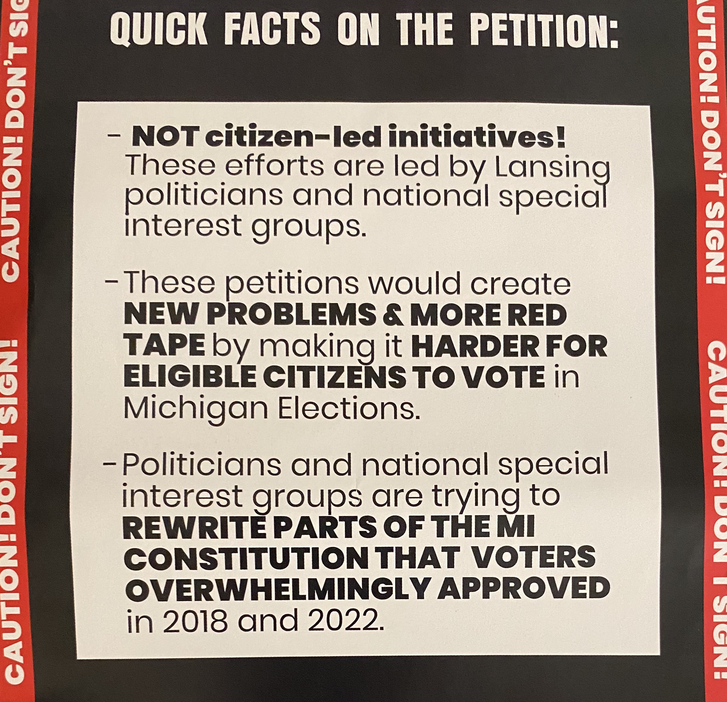 Republican politicians made a new push in the Michigan House with HJR B (similar to the SAVE Act in Washington), which would add burdensome requirements to the 2022 amendment. Fortunately they could not muster the two-thirds majority required to pass it. Now the politicians are attempting an end run by getting citizens to sign a petition to put their amendment on the ballot.