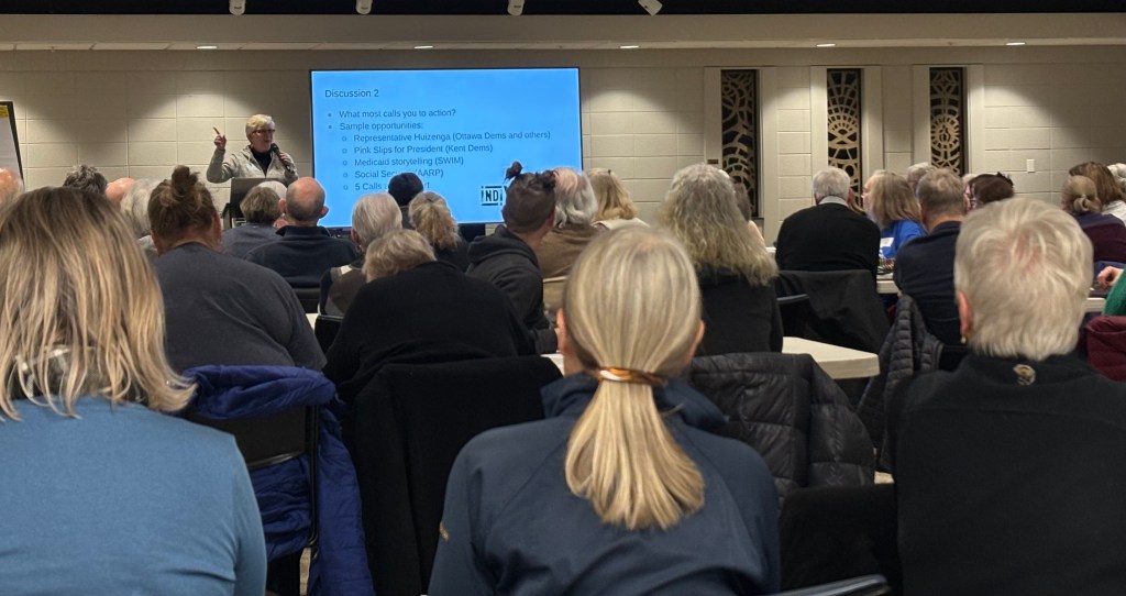 We encourage people to find their local Indivisible chapter–or engage with several! Here in West Michigan, we don’t have hard boundaries between communities. There are chapters in Saugatuck Douglas, Grand Haven, Jenison, South Haven, Muskegon, and more. See the Indivisible “find your group” page, or reach out via our contact page if you’re not sure how to connect.